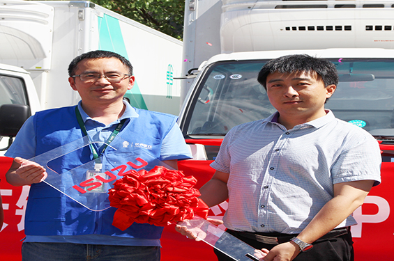 萬眾期待之中,首批600P冷藏車的鑰匙由金慶鈴汽車店徐總遞交到浙江長典醫藥有限公司廖衍總經理手中。