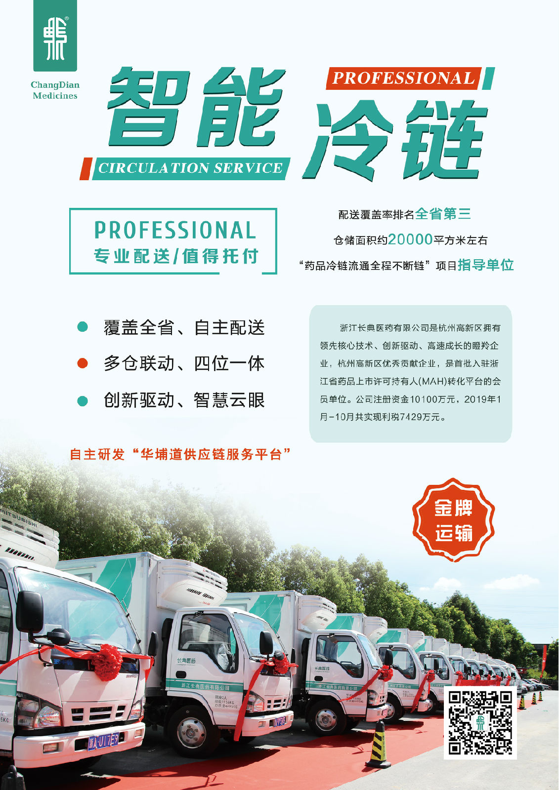 來自浙江長(zhǎng)典醫(yī)藥有限公司“智能冷鏈”相關(guān)介紹受到關(guān)注。根據(jù)浙江省采購中心發(fā)布的《關(guān)于公布藥品配送企業(yè)配送率的通知(2019年第一季度)》公告,浙江長(zhǎng)典醫(yī)藥有限公司在浙江全省藥品配送覆蓋率排名第三。