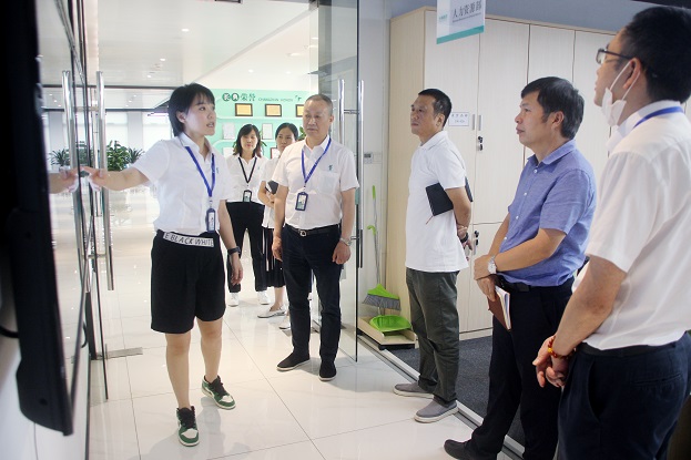智慧新天地發(fā)展服務(wù)中心相關(guān)負(fù)責(zé)人向領(lǐng)導(dǎo)一行詳細(xì)介紹了以長(zhǎng)典醫(yī)藥等智慧健康領(lǐng)域領(lǐng)軍企業(yè)為集群的杭州高新區(qū)(濱江)智慧醫(yī)健“萬(wàn)畝千億”新產(chǎn)業(yè)平臺(tái)。此平臺(tái)旨在形成高端制造集聚區(qū)、創(chuàng)業(yè)孵化集聚區(qū)、創(chuàng)新研發(fā)集聚區(qū)和公共配套區(qū),總部經(jīng)濟(jì)中心和展示體驗(yàn)中心的產(chǎn)業(yè)布局,形成杭州高新區(qū)(濱江)生命健康產(chǎn)業(yè)的核心集聚區(qū)。省發(fā)改委產(chǎn)業(yè)處處長(zhǎng)金菊萍聽(tīng)取匯報(bào)并不時(shí)提問(wèn)交流,了解產(chǎn)業(yè)情況、工作思路及現(xiàn)階段面臨的困難點(diǎn)。
