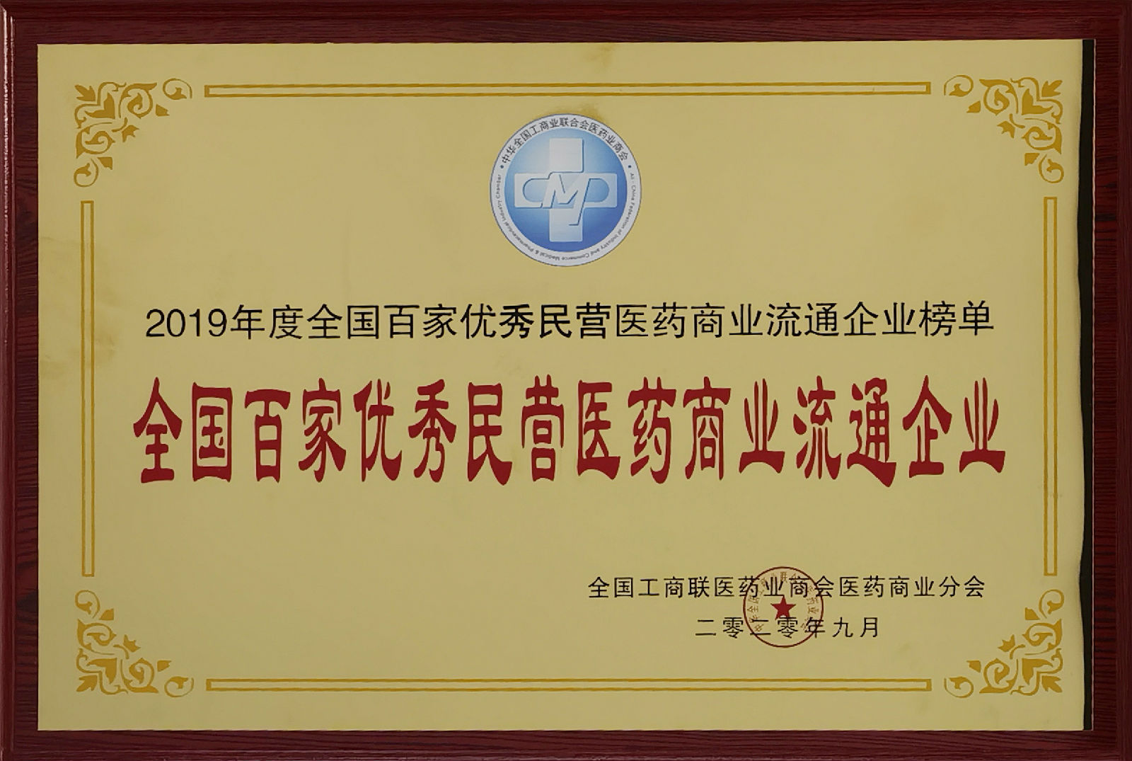 浙江長典醫藥有限公司榮獲2019年度全國百家優秀民營醫藥商業流通企業榮譽。